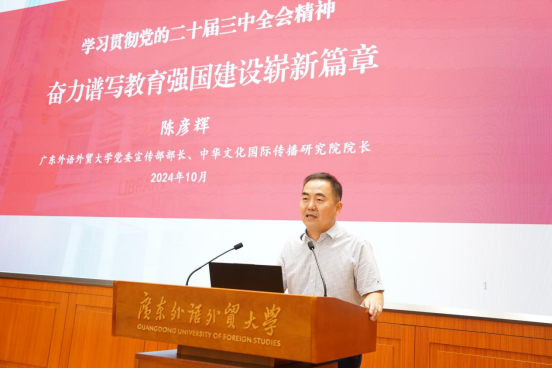 会上,陈彦辉以“学习贯彻党的二十届三中全会精神,奋力谱写教育强国建设崭新篇章”为题作专题报告,深入阐释了学习贯彻党的二十届三中全会精神,要在深刻领会和把握进一步全面深化改革的重要性和必要性、主题、重大原则、重大举措、根本保证上下功夫,并且结合高校实际,系统阐述了习近平总书记对教育强国的重要论述、历次全国教育大会的发展历程以及新时代两次全国教育大会的重要内容。